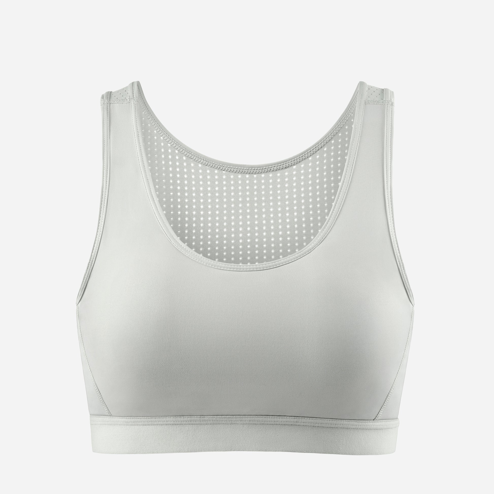 Light, breathable chest support for everyday comfort, not for extreme flattening.