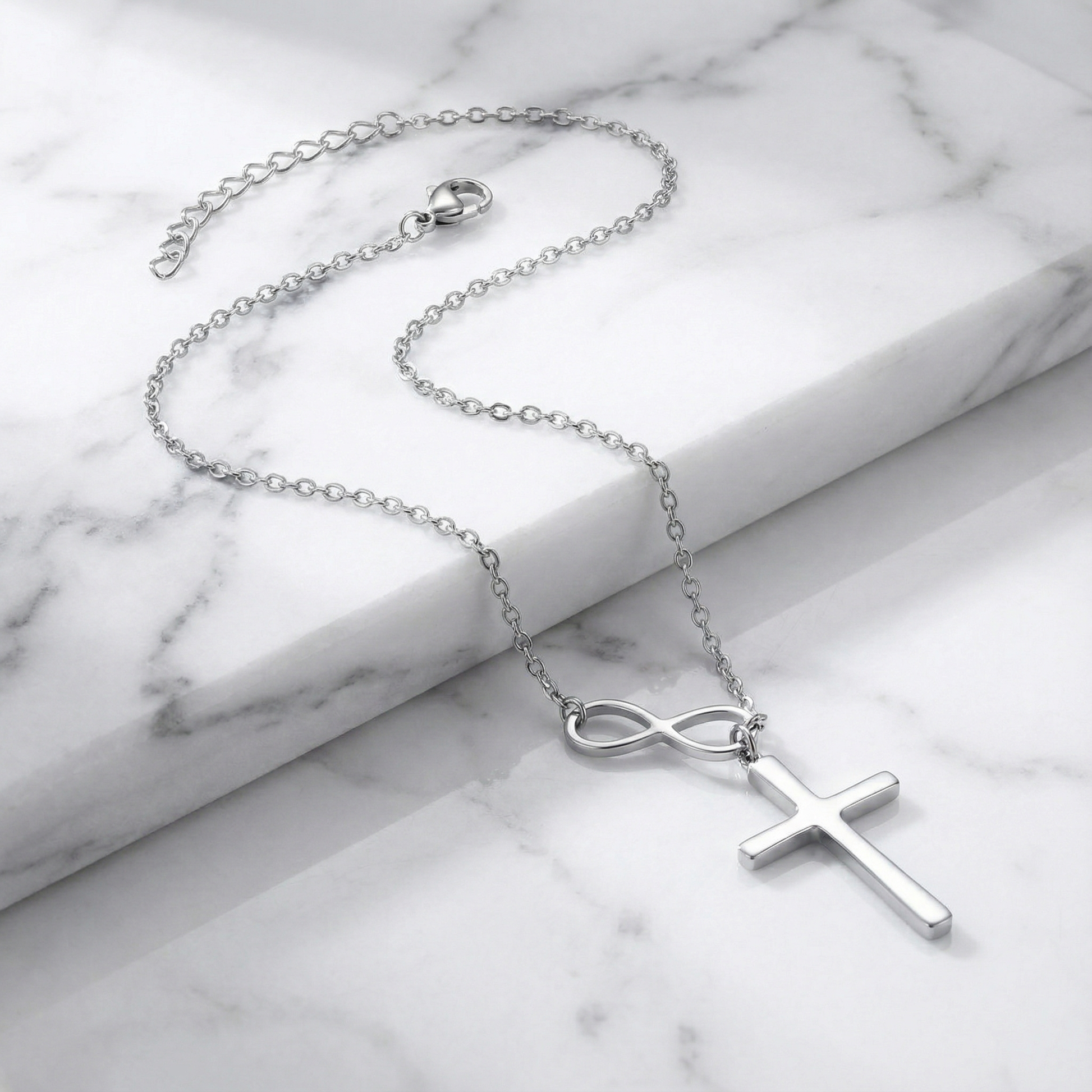 - Symbols: Cross 17 × 26 mm, Infinity 17 × 7 mm – two pieces joined so they move gently as you do.